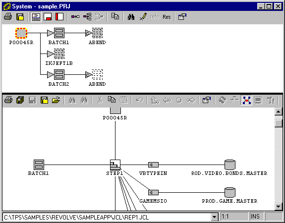 BATCH1.CBL is the selected element. Notice it is selected in the System view in the top pane.