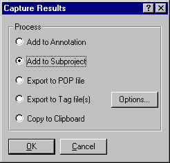 | Capture Results | Add the selected components to an item in the Capture Results dialog. |