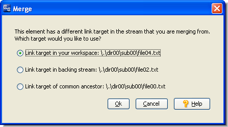 • Initial creation of the link. Note: A link object is created as either an element link or a symbolic link. You cannot switch the type of an existing link object.Executing Merge on a link element never involves the Merge tool (or third-party tool), which is designed to process the contents of text files.