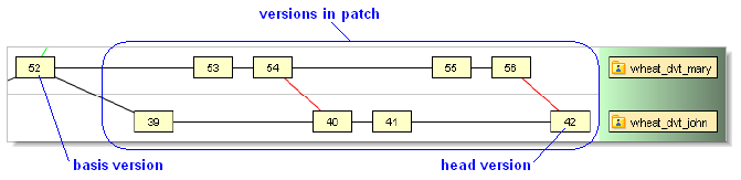 basis version of the patch. The patch consists of all the versions of the element between the basis version and head version. The basis version itself is not included in the patch -- it precedes the set of "recent changes" in version