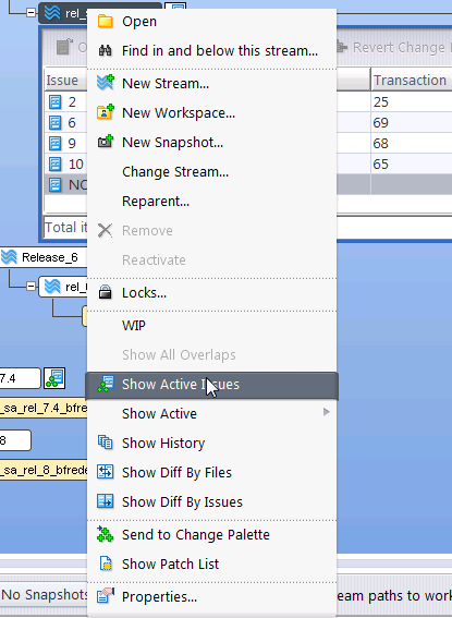 There are two ways to deal with unaffiliated changes: short-term and long-term. If you are working under a deadline and just need a way to deal with these files so that they don't keep you from promoting everything in a stream, you can simply right-click this row and select Send to Issue. You then can either assign these unaffiliated changes to a new issue that you create on the fly, or send them to an existing issue if an appropriate one already exists. (An “appropriate” issue might be a catch-all issue that you always use to hold miscellaneous unaffiliated changes. Or, it might be an issue that you know makes logical sense for these particular changes.)