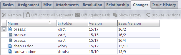 The change package for this new issue now includes multiple entries for one of the files, due to the introduction of multi-segments -- the ability of AccuRev change packages to track and correctly handle versions that are not necessarily related to the current changes.