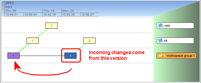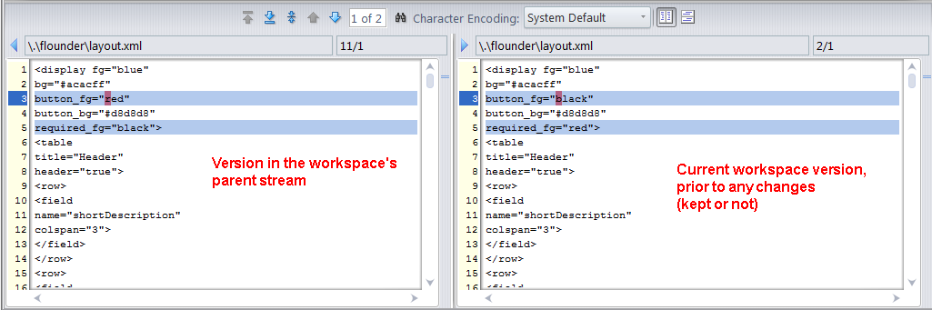 required_fg= have been changed in the version in the parent stream. The Version Browser depicts the relationship between the two versions like this: