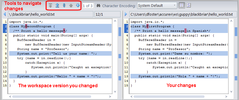 Tip: You can hide the Diff pane by clicking the