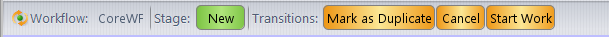 • The Issue History subtab displays a complete breakdown of how the issue record's field values have changed over time. See The Issue Form -- "Issue History" Subtab for more information.AccuRev Workflow is documented in the AccuRev® Web Interface User’s Guide, Version 2012.1 or later, but a brief summary of this toolbar is:Note: If an issue doesn't match any workflow stages, or is subject to multiple workflows, AccuRev displays a message to that effect where the buttons would otherwise appear. If an issue's fields don't match with the logic specified for a transition, the transition button appears, but it is grayed out until the user changes the fields required to bring the issue into compliance.To move from field to field, use the mouse or press Tab and Shift-Tab. To move from page to page in a multiple-page Issue form, click the subtab name (there is no keyboard accelerator).The Enter key confirms a menu choice or enters a line-break in a multiple-line text field. It does not perform field navigation. Within a multiple-line text field, the Tab key inserts a TAB character, rather than jumping to the next field.When an Issue form appears after you invoke Create Issue, you may notice that some fields already have values. AccuWork can include any number of such field initializations.If a field's label appears in red, it is a required field. You cannot Save the issue record until every required field has a value. (A text field has a value if it's non-empty; similarly, a multiple-choice listbox field has a value if it's not empty.) Some of those fields may have gotten their values through an automated field initialization.Each issue record has an integer identifier, its issue number. This number is unique within the depot (but not within the entire repository). AccuWork assigns the issue number automatically the first time the issue record is saved, and it cannot be changed thereafter. The issue number is stored in field issueNum. By default, the label for this field in an Issue form is Issue, but the edit-form designer can change the label for this field.Your entries in an Issue form are not stored in the issue record until you click theSave or