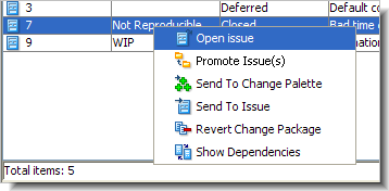 Show Incomplete is cleared) Opens a Change Palette tab, containing each head version in the issue's change package.