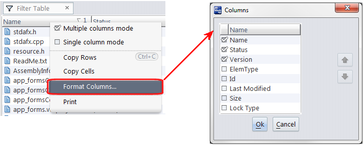 Tip: The results of the Filter Table field are temporary -- AccuRev lets you filter tables independently, from view to view. If you prefer, you can prevent AccuRev from displaying files based on an ignore patterns that you specify. You might want to exclude from view all backup and temporary files, for example. See