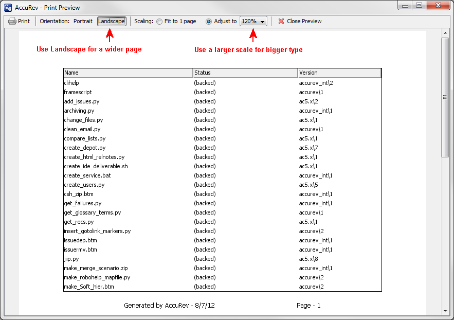 You can print tables in views throughout the AccuRev GUI by choosing File >
