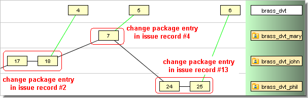 • For the purposes of this command, “issue record N” is shorthand for “change package of issue record N”.At this point, issue record #13 is active in stream brass_dvt. Promoting that issue record (using promote -Fx -l) promotes version brass_dvt/6 (real version: brass_dvt_phil/25).Issue A depends on issue B, in the context of a promotion from stream S1 to stream S2, if issue A is active in stream S1 and at least one element meets all the following conditions: