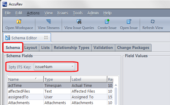 4. Click the Save button on the bottom right of the Schema subtab.Use the procedure described in this section to modify the AccuRev Web UI wui_config.xml file. Specifically, you edit the <issueURLMap> element to specify: