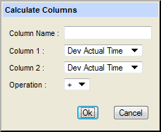 The Calculate Columns command allows you to perform basic mathematical operations (add and subtract, for example) on any two columns for issues displayed in the Web UI. For example, you might want to subtract the Dev Actual field from the Dev Estimate field for the issues displayed in the Query Results pane in the Queries tab.