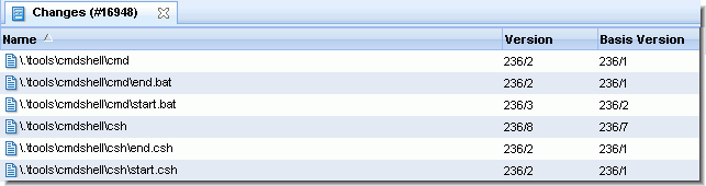 This command shows the entries currently in the change package for the selected issue. You can run this command from context menus and toolbars in the