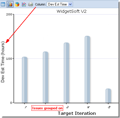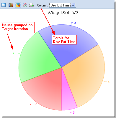 button on the issue list toolbar. Following are examples of bar, pie, and line charts.