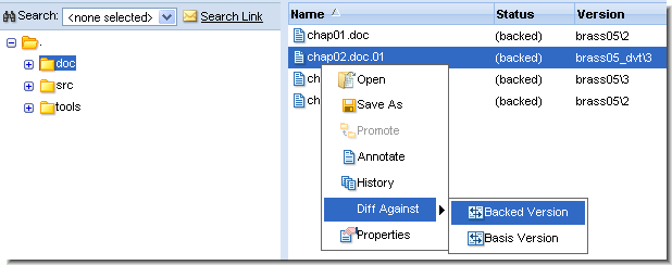 2. Select Diff Against Other from the context menu. The cursor changes to a cross when it is over version listings.