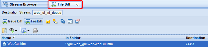 3. Choose Diff Prev. Trans. from the context menu to show the changes in that file caused by that transaction alone.This tab appears when a Diff Against Basis command is issued from the context menu in the File Browser Streams pane.This command displays the difference between the selected stream and its basis stream. You can display the differences by file or by issue, and switch between the two using the Issue Diff and File Diff buttons once the initial difference has been displayed.If you choose Diff Against Basis (by Files), the File Diff tab appears. This tab shows the source and destination streams for the comparison, and a list of files which differ between the two streams.Invokes your Web browser's Open command, allowing you to open or save (see Save As) the selected file.Opens the Promote dialog box to send the current version of the element to the parent of the current stream. See Promoting Elements.Opens the Version Browser, showing the versions of this file in the AccuRev repository.Compares this file to its basis versions and shows the resulting comparison in the Diffing Files in AccuRev®.Displays the Displaying Element Properties dialog box for the selected file.Using the Open Commands the selected file.