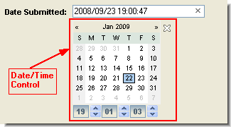 Date fields in AccuWork issues have an associated date/time control to assist in filling in the field. Click in the field to display the date/time control. This control defaults to the current date and time. Use the navigation arrows (<< and >>) to pick a different month.Click a day or adjust the time to put the date and time in the field. To close the control, use the click-to-close icon (). To clear an existing value from the date field, click the Clear button on the right side of the field.