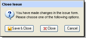 Save and Close () button in the tab's toolbar. When you save an issue record, the issue record is stored in the depot's issue database, within the AccuRev repository. For new issues, AccuWork assigns the next available integer issue number to the new issue record when you save your work. This number cannot be modified.