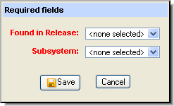 • The set of required fields has changed. If a field's label appears in red, it is a required field. You cannot Save the issue record until every required field has a value (that is, is not empty or in the case of lists, is set to a value other than <none selected>). Some required fields may have values set through an automated field initialization.