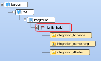 Once the administrator creates the gated stream nightly_build, the developers reparent their workspaces to it, as shown in the preceding illustration. Under the covers, AccuRev creates a staging stream for each of the reparented workspaces, like those shown here:
