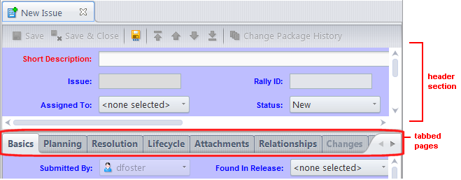 You can also redefine an existing page to be a header table: right-click the gray box and select Properties. All fields in the header table will appear at the top of the database's Issue form, above every tabbed page.