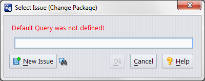 Choose an issue record associated with another user. To do so, choose a user or group name from the drop-down list to the right of the Issue # field. The set of names shown here is defined when the change-package configuration is set (see Change Packages Tab).