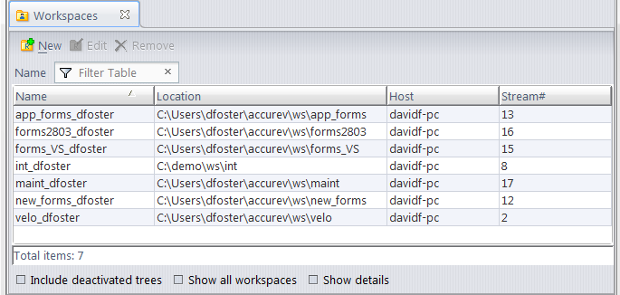 Inactive indicates that the workspace is currently deactivated. Inactive workspaces can be reactivated. See the Remove and Reactivate commands below.