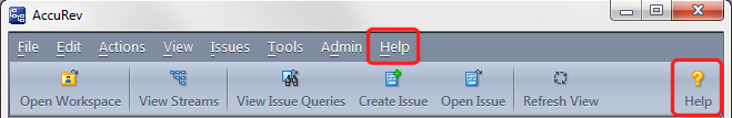 The AccuRev GUI provides extensive documentation in the form of a context-sensitive help system. This help not only covers the AccuRev GUI, but also provides access to the complete AccuRev documentation set, in both HTML and PDF format. The help can be invoked from the AccuRev Help menu, or from the Helpbutton on the toolbar, for from the F1 key, anywhere in the AccuRev GUI.
