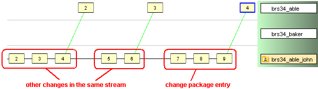 • Drag-and-dropping the issue record(s) onto another stream or workspace in the Stream Browser display. The destination can be the parent (backing) stream, another dynamic stream, or one of your workspaces. This invokes a Promote or Send to Workspace operation on all the elements in the selected issue record(s).You can also drag-and-drop the subwindow control to another stream. This performs the Promote or Send to Workspace operation on all the issue records in the subwindow (even if only some of them are currently selected).Note: in the remainder of this technical note, we shorten the term “issue record” to “issue”.Note: if Promote fails with a “merge required” error, you must perform a merge for one or more elements in the source workspace (or a workspace below the source stream). When promoting the merged version(s), assign them to the same issues as the original version(s).In this scenario, your intention is the same as in the preceding one — to cross-promote the versions in one or more issues from one dynamic stream to another. Before proceeding, please see the definition of the following terms in the AccuRev Glossary chapter of the AccuRev Concepts Manual: direct, indirect, incomplete, cyclical, and coalesce.You start the same way, with a drag-and-drop operation from stream brs34_able to stream brs34_baker: