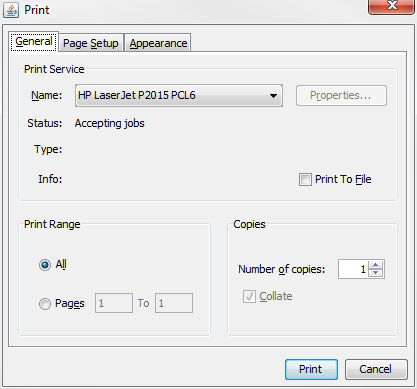 AccuRev displays the familiar Print dialog box, an example of which is shown here.