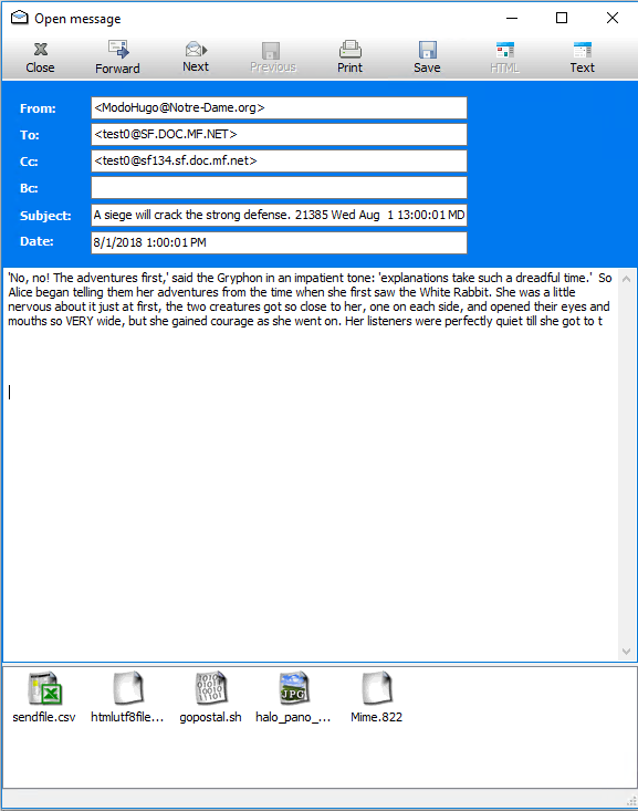 Click on a mail message to read or export. Note that for any message attachments, the attachments still require their programs. For example, to read a Microsoft Word document that was attached to a mail message, you must have Word installed.