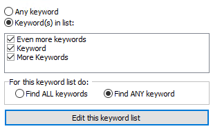 To edit the keyword list select the Edit the keyword list button to open the keyword list menu.