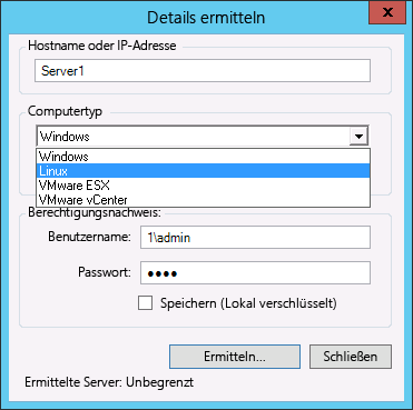 Wenn mehrere Computer ermittelt werden sollen, geben Sie mehrere Hostnamen oder IP-Adressen getrennt durch Semikola ein. Wenn sich das Ziel hinter einem NAT-Gerät befindet, geben Sie seine öffentliche (externe) IP-Adresse an.