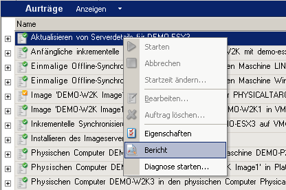 2. Klicken Sie mit der rechten Maustaste auf den Auftrag und wählen Sie Bericht.