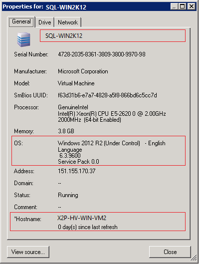 En el recuadro de diálogo Properties (Propiedades) de la carga de trabajo de destino, el nombre de host mostrado es el nombre del host del sistema operativo. El nombre de host registrado se muestra en la parte inferior de la pestaña General con el valor *Hostname, como se muestra en la Figura 3-3. El valor del sistema operativo se muestra con la anotación Under Control (Bajo control).