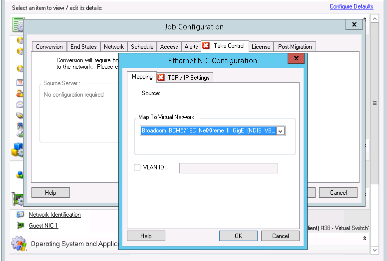 En la sección Network Configuration (Configuración de red) de la ventana Migration Job (Trabajo de migración), lleve a cabo una de las acciones siguientes: