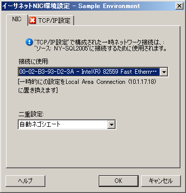 ネットワークインタフェースのマッピングおよびTCP/IP設定にアクセスするには、ソースおよびターゲットの領域にある設定を適宜クリックします。