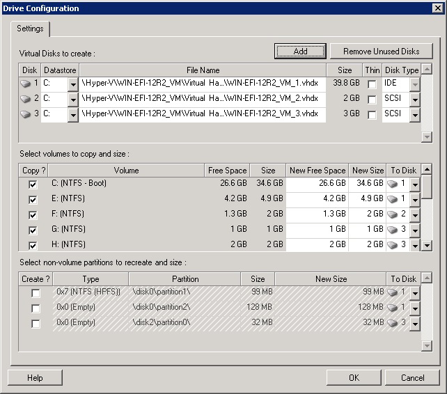 Na seção Drive Configuration da janela Migration Job, defina as seguintes configurações. Para obter as opções específicas do Hyper-V, consulte a Seção 33.2.2, Configuração da unidade: Hyper-V.