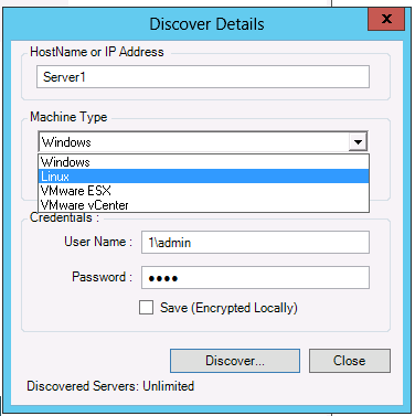 Na caixa de diálogo Discover Details, digite o nome de host ou endereço IP da carga de trabalho de origem.