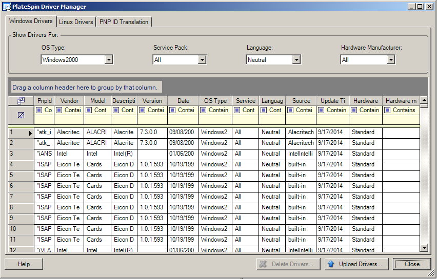 Use o PlateSpin Driver Manager para fazer upload de drivers de dispositivo para o banco de dados de drivers.
