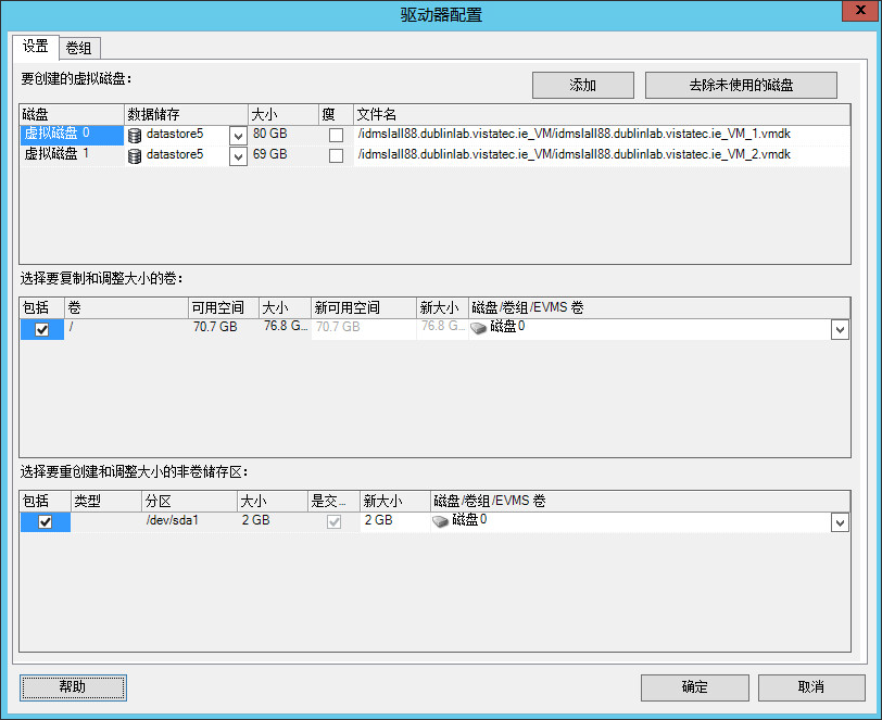 磁盘/卷组:将卷指派到磁盘,如果启用了 LVM,则指派到卷组。该卷将复制到目标计算机上的此磁盘或卷组。