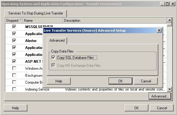 3. To indicate that you want SQL Server and Exchange Server database files copied during the migration, click Advanced (applicable to Windows systems only).