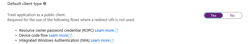 The Public Client setting allows the Migrate server to authenticate programmatically to Azure when it uses the Azure APIs.