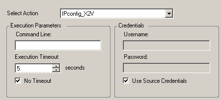 Execution Parameters: By default, it displays the command line parameters and timeout value that you specified when you added this action to the PlateSpin Server library. You can edit the displayed command line parameters and the timeout value.