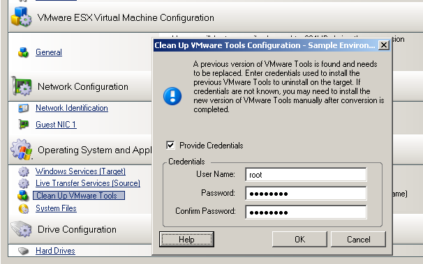 NOTE:If you are downgrading a virtual machine that has VMware Tools installed, or if you are converting a virtual machine to another VMware target that has an older version of VMware Tools, the installation of VMware Tools during the configuration of the target will fail.