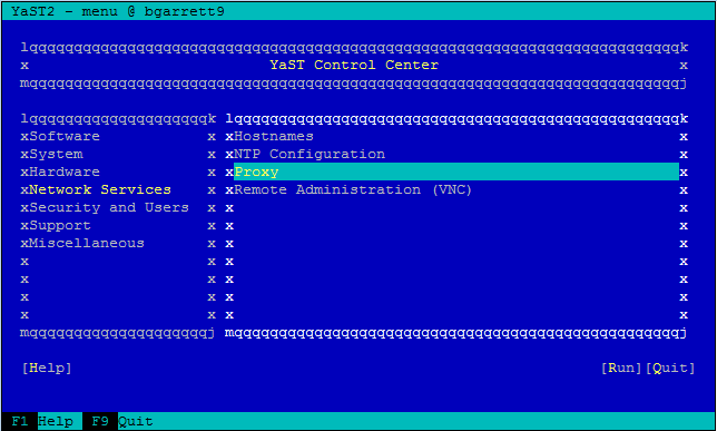 3. In YaST, navigate to Network Services, select Proxy, then press Enter.