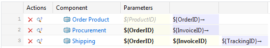 在第一个业务组件中订购一个产品,这会产生一个 OrderID,然后将其传递给后续业务组件。