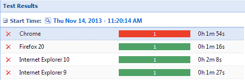 面板上,可以查看所有项目最后一次测试运行的状态。