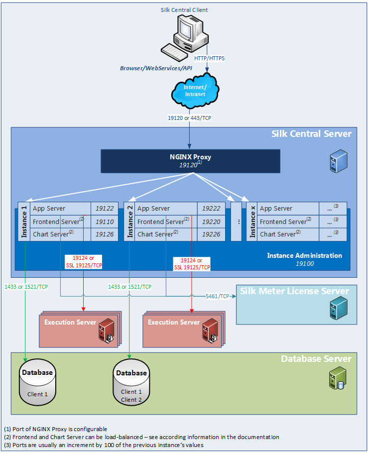 执行服务器用于执行由授权用户计划的自动测试。用户负责正确配置测试执行所需的执行服务器以及其他资源。系统允许安装和配置彼此独立工作的多个执行服务器。执行服务器对默认实例使用端口 19124。对于使用 SSL 的安全连接,服务器还会使用端口 19125。