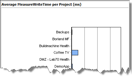 The Average MeasureWriteTime per Project (ms) section displays the average time that the system actually uses to write one measure to the database, for each project.