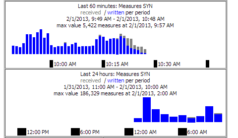 | MeasureWriteTime (limit) | The maximum time that the system may use to write one measure to the database, based on calculated estimates. See Measures received / written per period for actual numbers. |